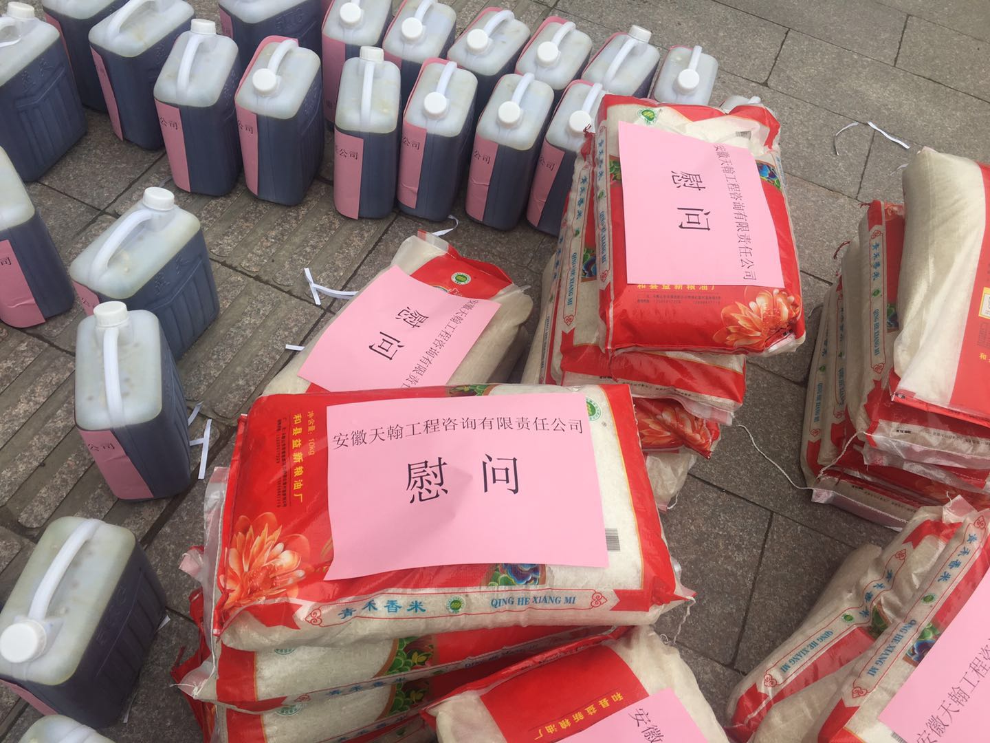 2020年1月9日上午,我公司郑蒲港慢行系统项目监理部参与郑蒲港新区征管局胡业山局长组织的扶贫活动,共帮扶贫困家庭27户,每户一袋米,一桶菜油。