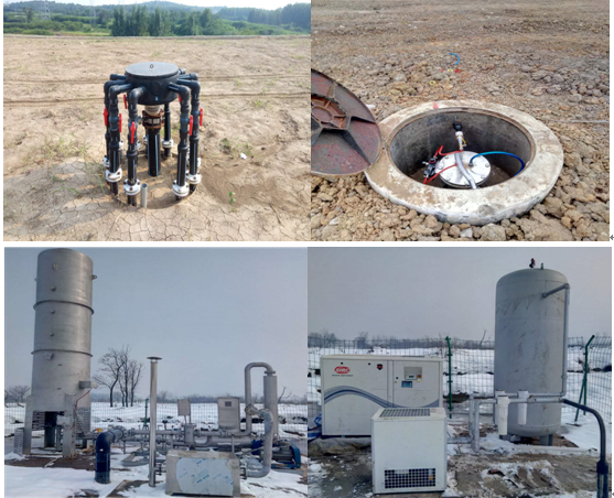●气体收集处理工程:气体管道系统包含气体管道、集气装置、导气井装置。导气井包含HDPE管道安装及空压泵安装,利用空压泵气动原理,将收集的废气输送至集气站汇集、提升浓度后,再经导气干管及总管运输至火炬、活性炭设备区域处,以进行燃烧或净化外排。火炬处理设备由空压设备、火炬设备、活性炭设备组成,其中,空压设备包括空压机、干燥机、储气罐、三级过滤器。火炬设备具有熄火保护、断电安全、回火安全、自动点火、烟气温度控制等功能。