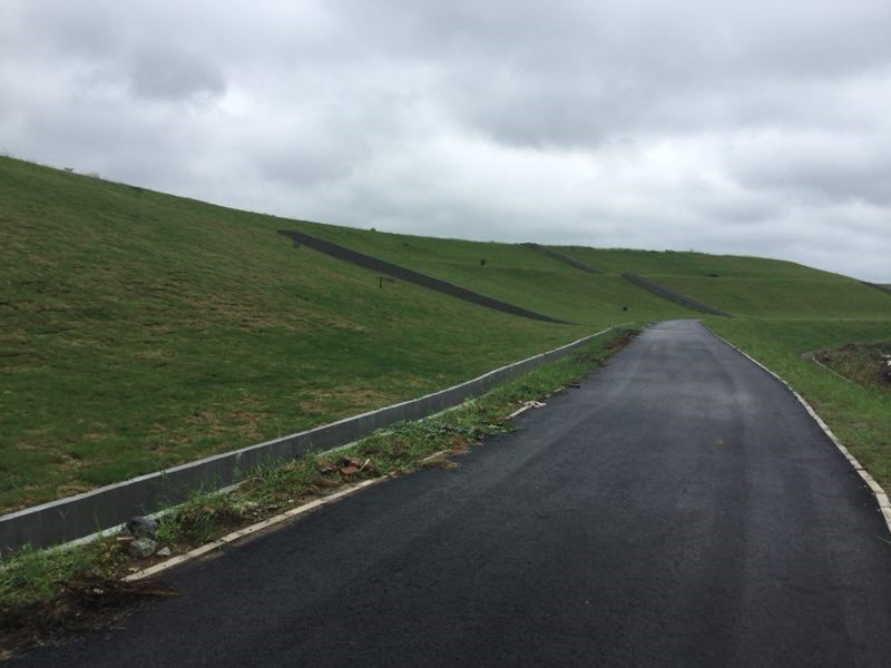●道路工程:包含封场上坡进场道路工程。道路位于封场覆盖系统之上,面层为 4cm 细粒式沥青混凝土 AC-13C+6cm 中粒式沥青混凝土 AC-20C,基层为 20cm 5.0%水泥稳定碎石,底基层为厚 20c3.0%水泥稳定碎石。形成全场贯通,为后期的运营维护提供了便捷交通。