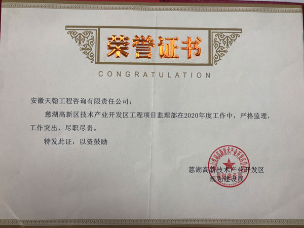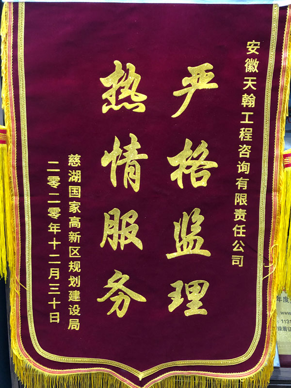 我公司监理的慈湖高新区技术产业开发区工程项目在2020年度工作中,严格监理、工作突出,尽职尽责,获得业主单位慈湖高新技术产业开发区规划建设局的认可和高度赞扬,近日对该项目监理部进行了表彰,并颁发了锦旗。