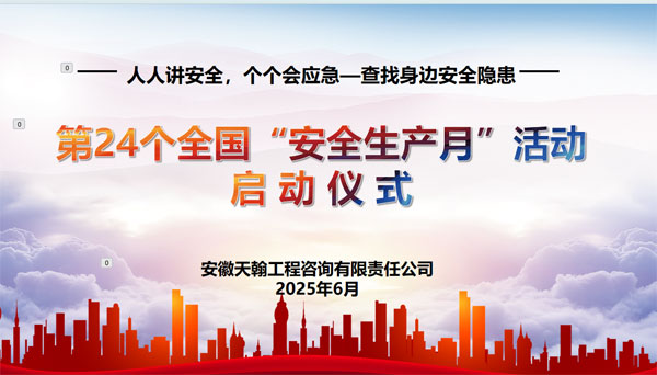 首先,公司总经理周文杰宣布安徽天翰工程咨询有限责任公司2025年“安全生产月”启动,要求全公司要加强安全学习,贯彻落实今年安全月主体“人人讲安全、个个会应急-查找身边安全隐患”活动,提高安全意识,绷紧安全之弦,加强隐患排查,筑牢安全防线,压实安全责任,确保取得实效,安全没有旁观者,人人都是责任人,全公司要以安全生产月为契机,以更坚定的决心,更有力的举措,更扎实的工作,推动安全生产,为公司发展保驾护航。