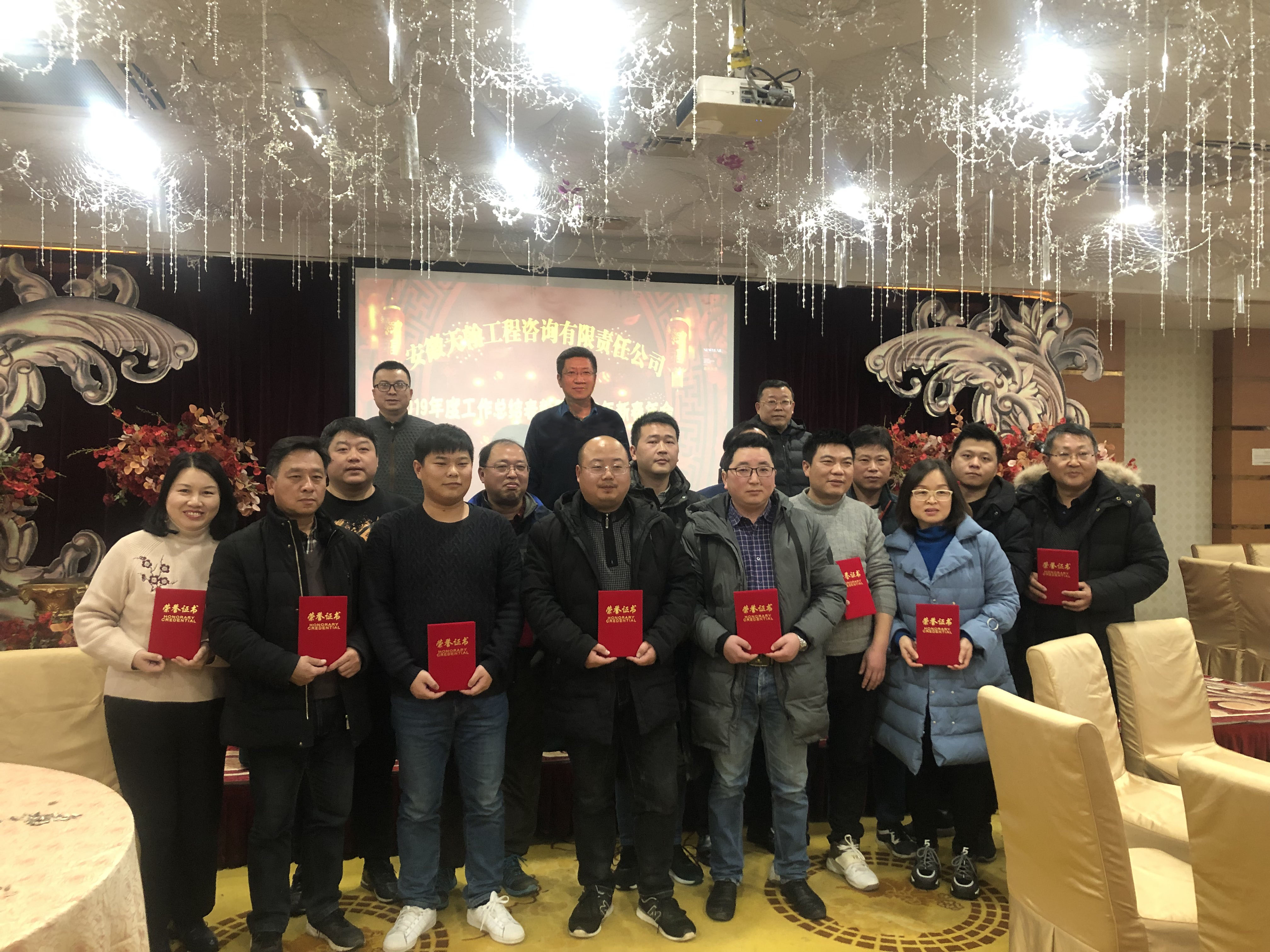 大会首先由周文杰董事长作公司2019年度工作总结报告及2020年初步计划;随后,综合部杨广宝主任宣读公司2019年度先进团队、先进个人表彰文件,项目管理部董如亮经理宣读公司2019年度获奖项目表彰文件。最后,公司三位领导为获奖员工、获奖团队颁发荣誉证书和奖励并合影留念。