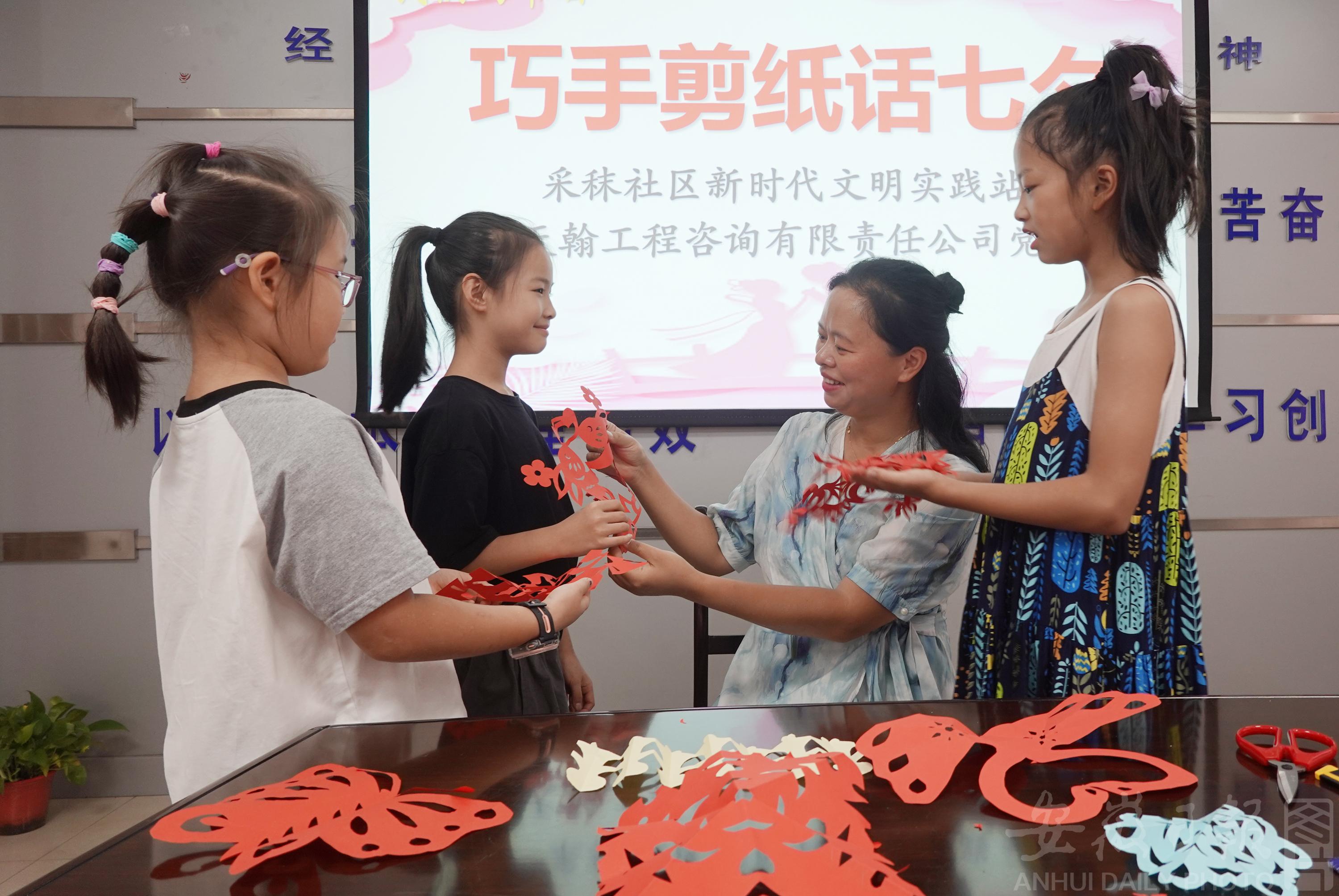8月6日,马鞍山市花山区桃源路街道采秣社区新时代文明实践站联合非公企业安徽天翰工程咨询有限责任公司党支部,共同开展“我们的节日——巧手剪纸话七夕”主题活动。志愿者指导社区居民和儿童学习掌握剪纸技巧,在领略民间艺术魅力的同时传播传统文化。通过举办形式新颖的活动宣传中国传统文化,让居民和孩子了解七夕传说、喜欢上中华传统文化。
