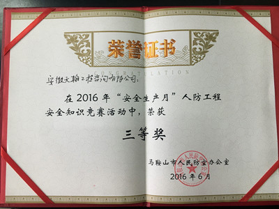 2016年“安全生产月”人防工程安全知识竞赛三等奖