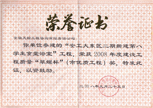 2008年度翠螺杯奖:安工大第八学生食堂公寓工程