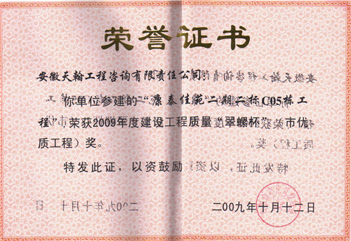 2009年度翠螺杯奖:康泰佳苑二期二标C05栋