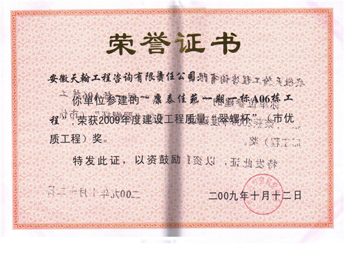 2009年度翠螺杯奖:康泰佳苑一期一标A06栋