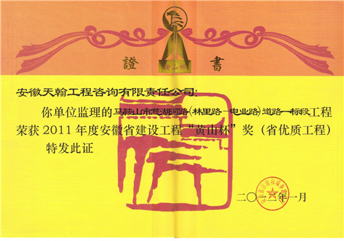 2011年度黄山杯奖:市慈湖河路(林里路-电业路)道路工程