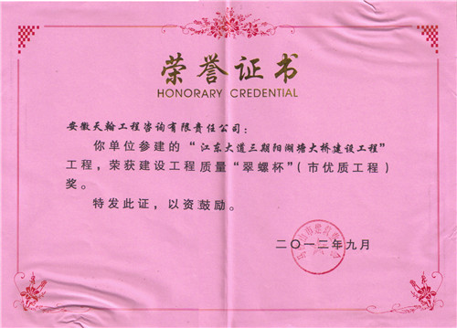 2012年度翠螺杯奖:江东大道三期阳湖塘大桥建设工程