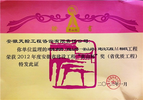 2012年度黄山杯奖:湖东南路(超山-釜山路)A4标段工程