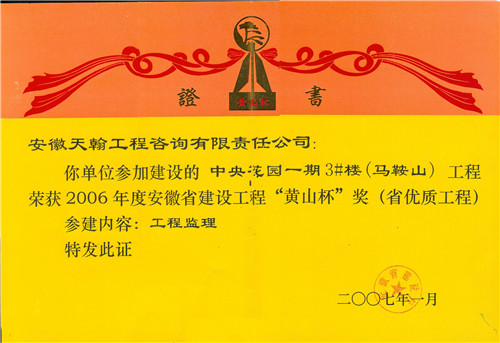 2006年度黄山杯奖:中央花园一期3号楼工程