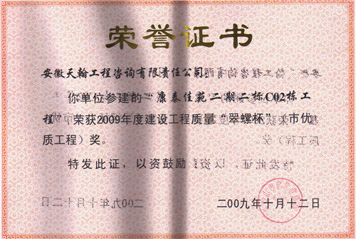 2009年度翠螺杯奖:康泰佳苑二期二标C02栋