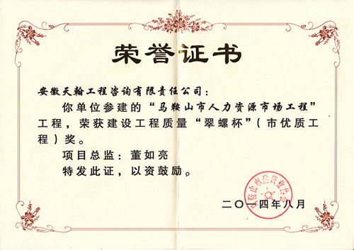 2013年度翠螺杯奖:马鞍山市人力资源市场工程