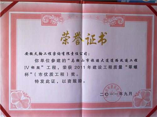 2011年度翠螺杯奖:旅游大道IV标段工程