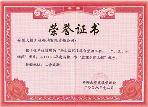 2008年度市监理示范工程:雨山路综合整治工程
