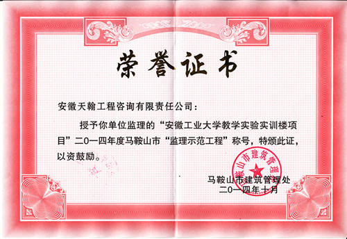 2014年度马鞍山市监理示范工程:安工大实验实训楼监理师范工程