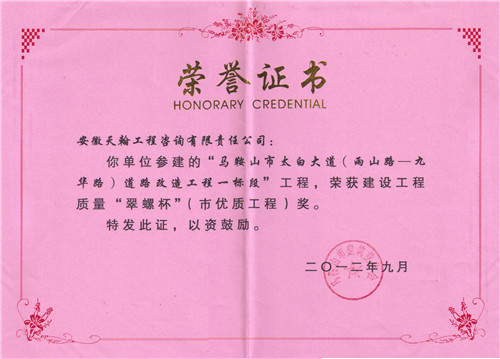 2012年度翠螺杯奖:太白大道一标段工程