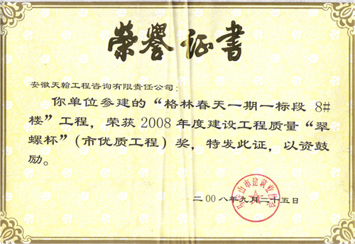 2008年度翠螺杯奖:格林春天一标8#楼工程