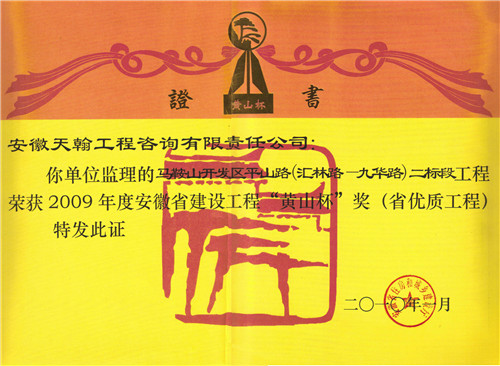 2009年度黄山杯奖:开发区平山路(汇林路-九华路)工程