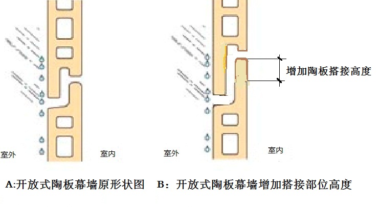 (1)改进陶板幕墙水平缝处陶板搭接部位形状,具体改进的图形如下: