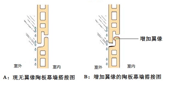 ②、改进陶板搭接方式,增加防水翼缘,如图2所示: