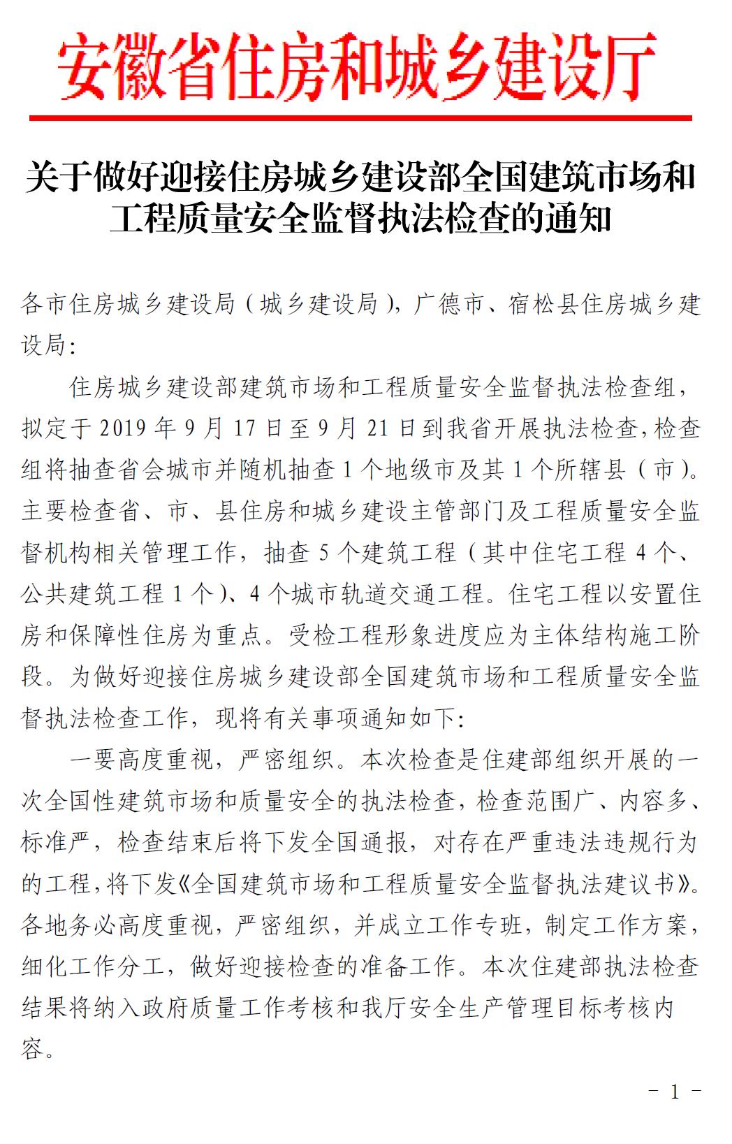 [转发]关于做好迎接住房城乡建设部全国建筑市场和工程质量安全监督执法检查的通知