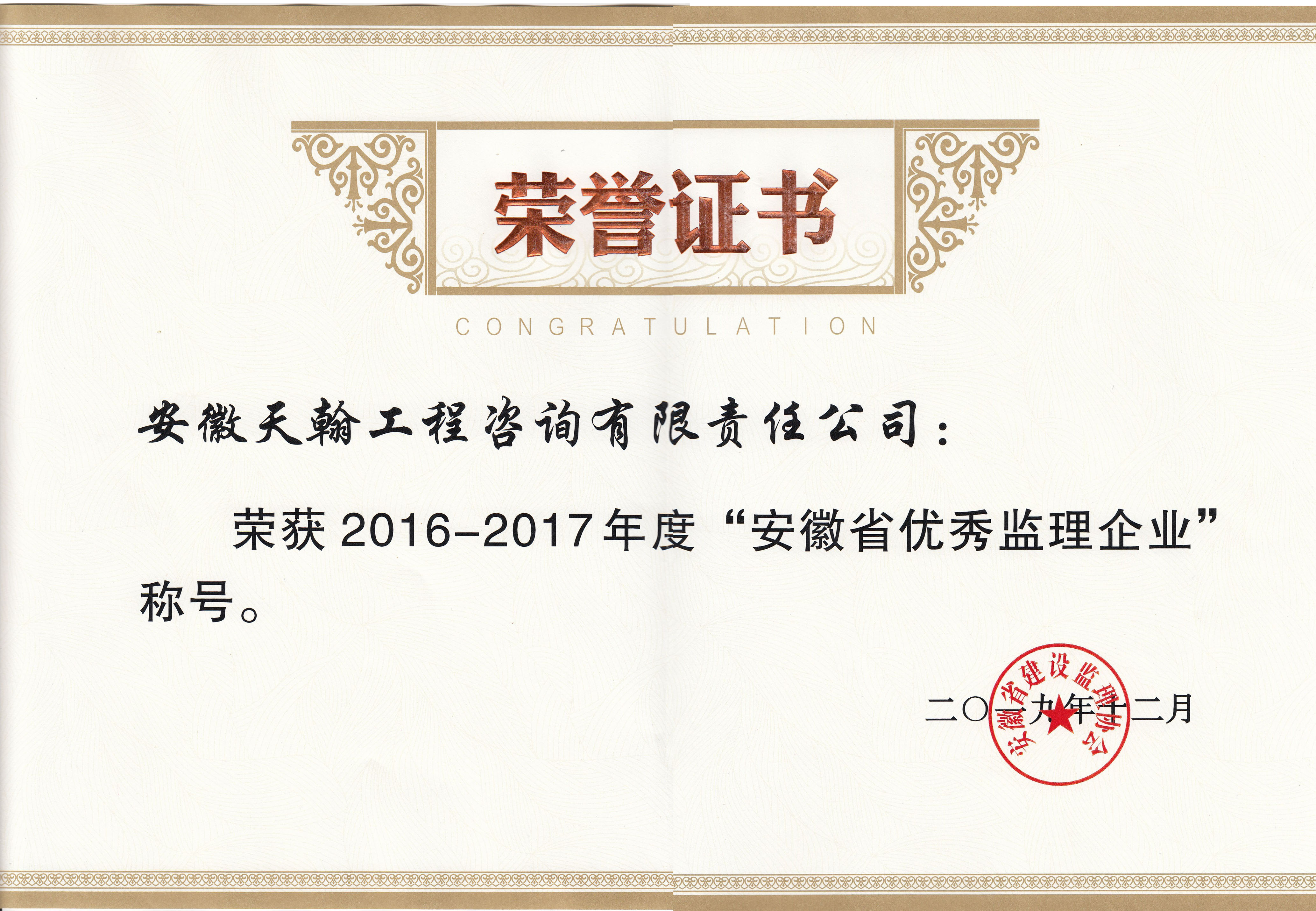 2016-2017年度安徽省优秀监理企业