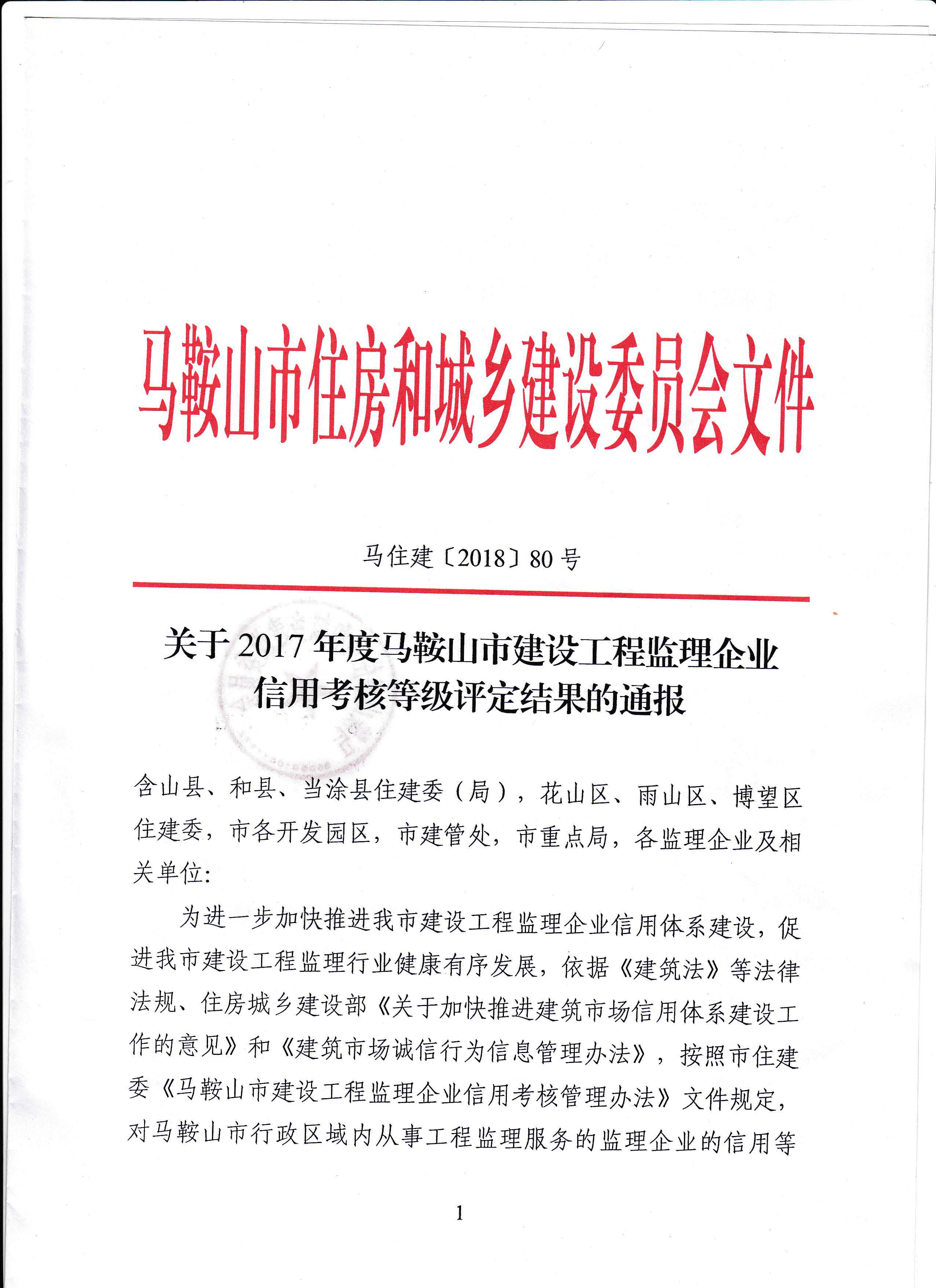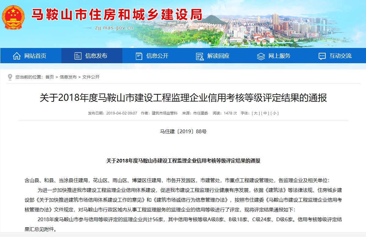 2018年度马鞍山市监理企业信用考核等级评…