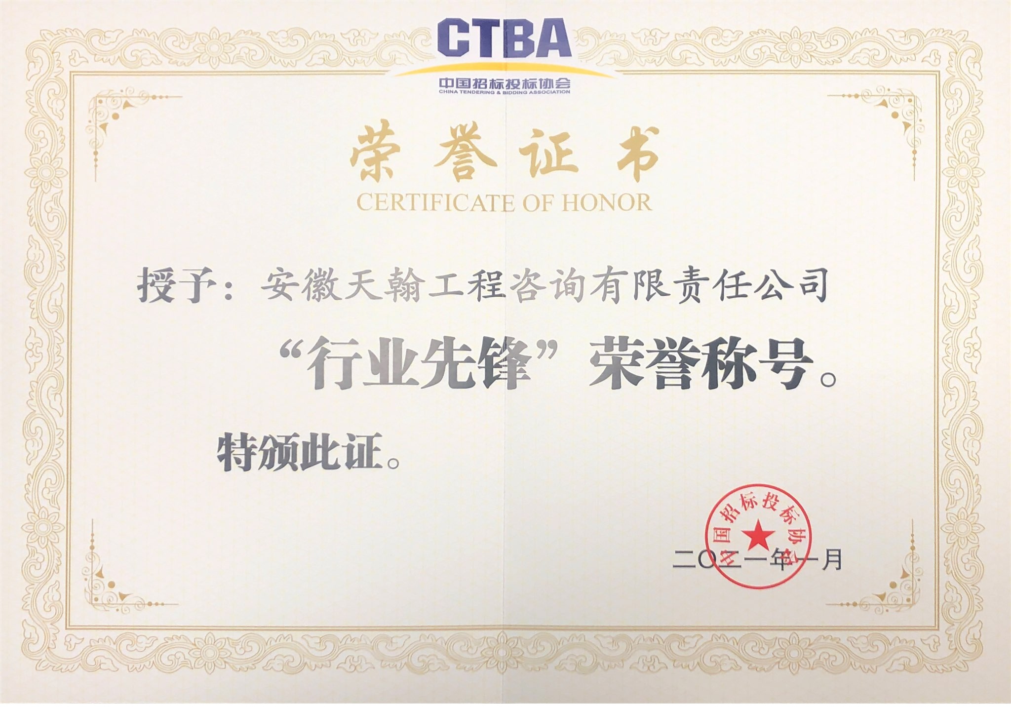 中国招标投标协会“行业先锋“荣誉