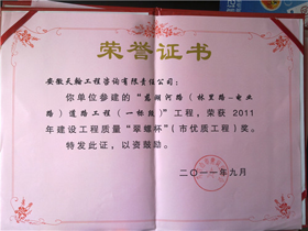2011年度翠螺杯奖:旅游大道I标段工程