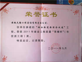 2011年度黄山杯奖:市湖西路道路工程
