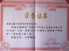 2011年度翠螺杯奖:旅游大道VI标段工程