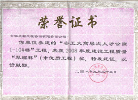 2008年度翠螺杯:安工大学生公寓H2#楼工…
