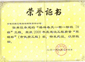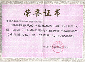 2008年度翠螺杯奖:格林春天A9#楼工程