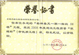 2008年度翠螺杯奖:格林春天A9#楼工程